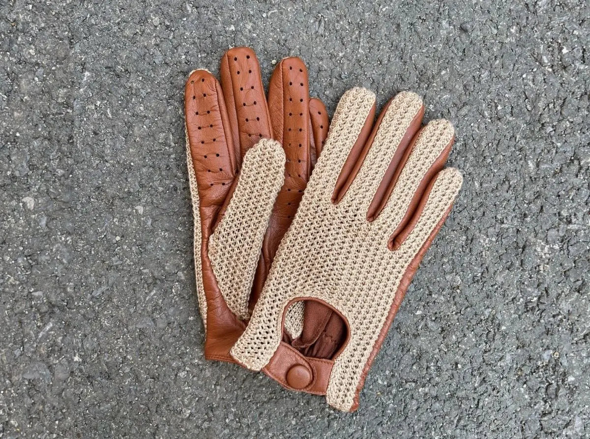 Men’s Retro Goatskin Driving Gloves with Woven Back – Brown